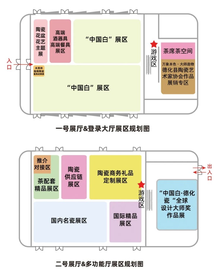 本届瓷博会创新采用“1主2副”展区布局:以德化会展中心为主会场(展览面积达12000平方米),德化瓷艺城、中国茶具城为分会场,形成全域联动的展览格局。