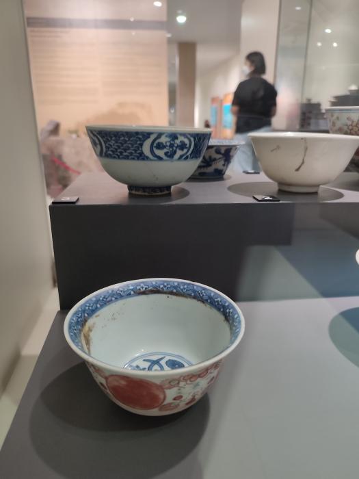 约15至16世纪间,兰纳王国出土的明代白釉、青花与釉上彩瓷器,展现了当时中泰间的陶瓷交流。现展出于清迈国家博物馆。受访者供图