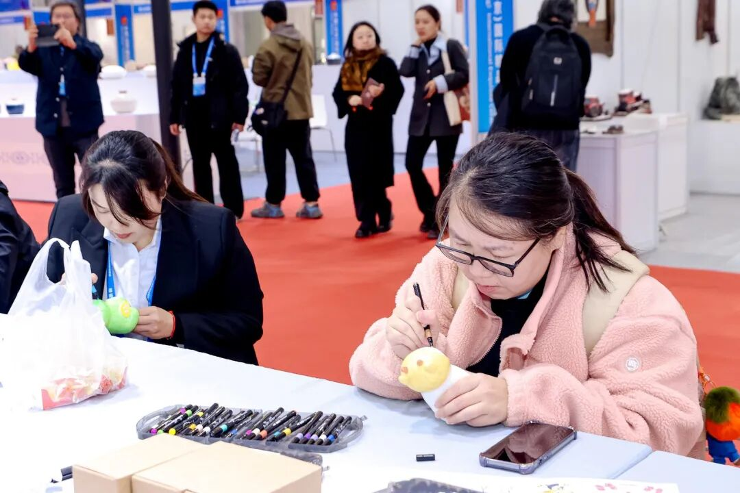 12款专属生肖印章分布在展会各大展位,观众手持集印手册,穿梭于各个展区打卡集章,每一枚印章都成为连接观众与陶瓷文化的纽带。更令人期待的是,集齐展会印章还可抽取精美礼品,让这场寻宝之旅不仅充满趣味,更有满满收获,北京陶瓷艺术馆展位前,不少观众驻足集章,感受陶瓷与艺术、文化的深度融合。