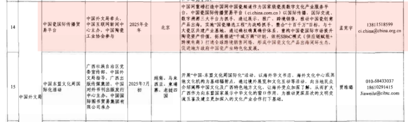 ▲“国瓷臻选工程”入选《对外文化贸易“千帆出海”行动计划2025年工作方案》及重点项目清单截图