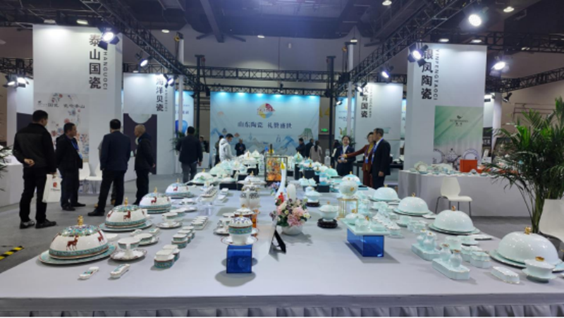 省工业和信息化厅组织淄博、临沂、泰安、滨州、德州、枣庄、菏泽、东营等地40余家陶瓷琉璃企业及艺术工作室参展,设立山东主题形象展区,展出181套、共2430件产品,全面展示山东陶瓷琉璃产业的文化底蕴与创新实力。华光国瓷、山东硅元、山东银凤、泰山瓷业、汉青陶瓷、山东海瓷6家“国瓷生产企业”的陶瓷精品集中亮相。系列展品中既有服务国庆庆典、APEC会议、冬奥会、世界园艺博览会等国家级盛会的经典之作,也有融合现代设计、面向百姓生活的文创礼品,生动展现山东陶琉产业“传承千年齐鲁匠心”的独特魅力。