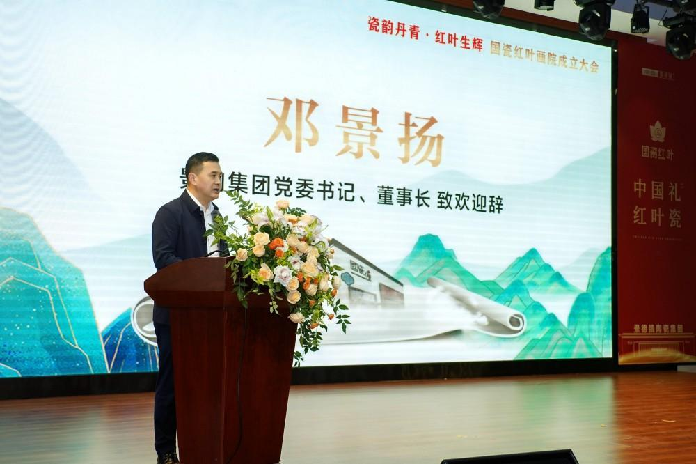 11月9日,景德镇陶瓷集团旗下国瓷红叶画院成立大会在红叶陶瓷国瓷馆举行。江西省轻工业联合会理事长郑正春,景德镇市政府党组成员、昌南新区党工委书记余立新,景德镇陶瓷研究院党组书记、院长吴浪,江西陶瓷工艺美院党委委员、副院长朱辉球,江西省轻工业联合会秘书长崔军,景德镇陶瓷协会秘书长陈华清,中国工艺美术大师刘伟,中国工艺美术大师黄景藏,景德镇陶瓷大学设计艺术学院院长余剑峰,景德镇学院陶瓷美术与设计艺术学院党委书记陈后辉,市工信局副局长朱成,市昌南新区党工委委员、管委会副主任张英,景德镇新闻传媒集团副总经理丁添,北京天坛文化产业有限公司CEO王莎莎,哔哩哔哩Vsinger业务部—市场总监刘冰洁及景德镇陶瓷集团领导班子等领导和嘉宾出席大会。