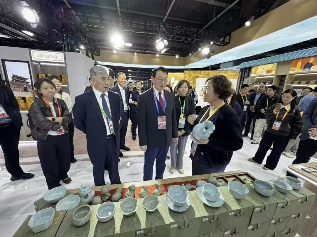展会期间,平顶山市委书记陈向平来到弘宝汝瓷展位,详细了解企业生产经营与品牌建设情况。她希望弘宝汝瓷把握进博会的展示机遇,敏锐捕捉国际市场商机,在产品研发与品牌打造上持续发力,让汝瓷这张“文化名片”更加亮丽。