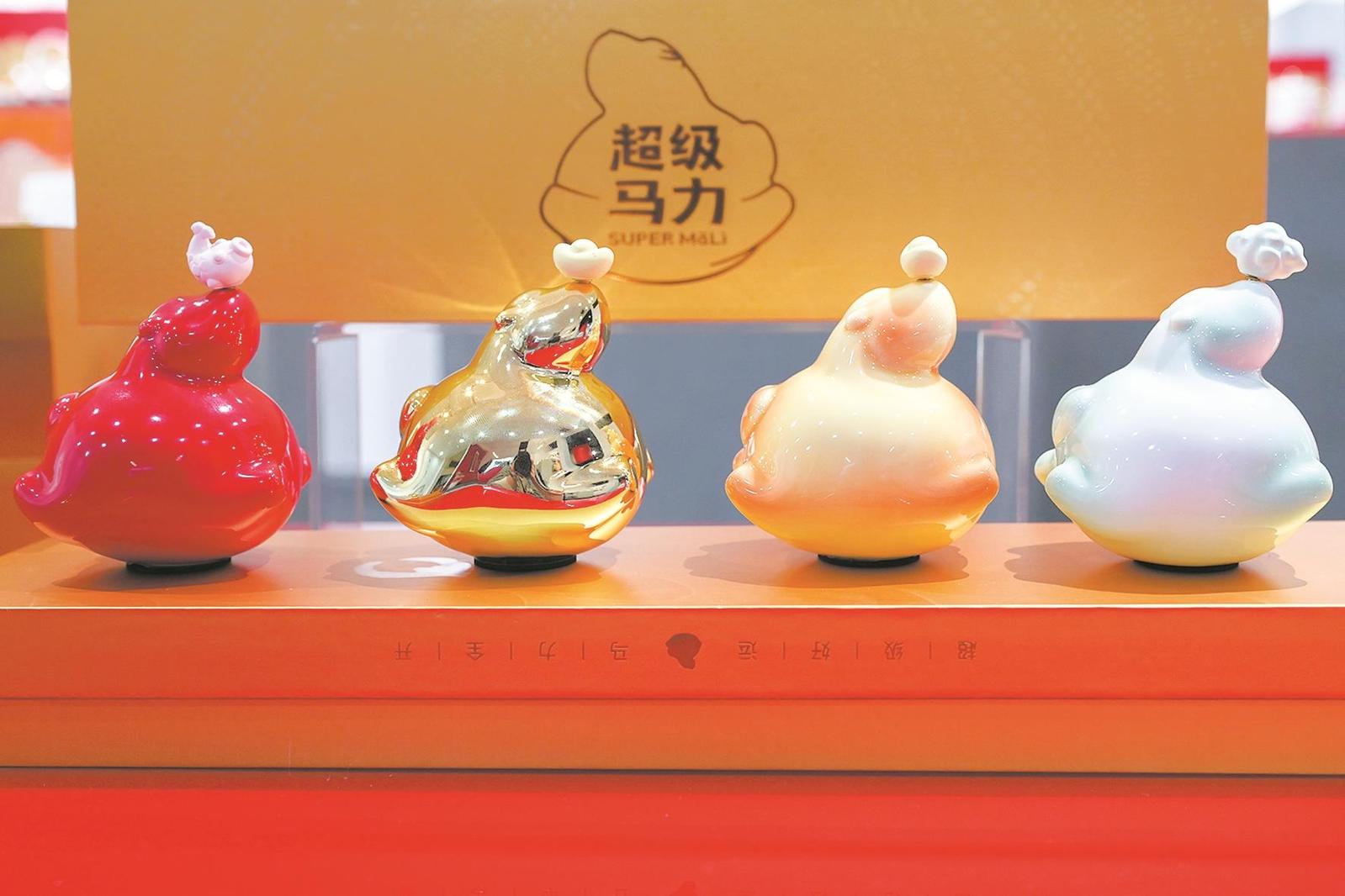 而在仟信慈艺工作室,一组“萌萌哒”的“超级马力香薰摆件”成为“吸睛担当”。“开发前我们做了充分的市场调研,最终选择将骏马形象进行Q版演绎,以亲切萌趣的设计拉近与消费者的距离。”创始人苏巧龙介绍,除了经典的金、红配色,团队还加入了多巴胺色系,“希望打破传统生肖瓷的受众边界,吸引更多元的客户群体,不论是自用还是送礼,都能找到心仪之选。”