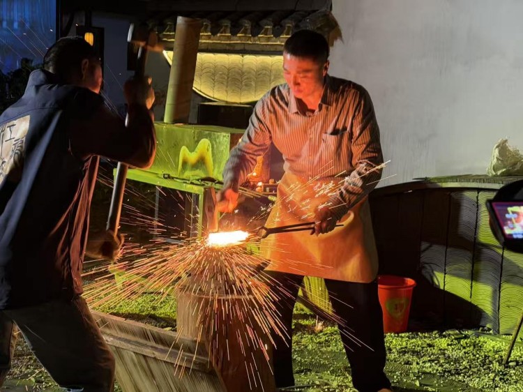 龙泉西街历史文化街区上演宝剑锻打展演,尽赏龙泉宝剑非遗魅力。摄影凌翎