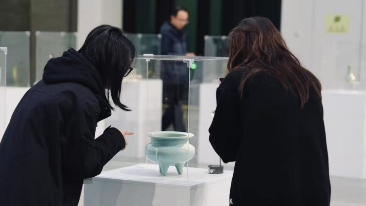 与会嘉宾参观“国宝重光·青瓷大系”复刻佳作,探寻千年青瓷的匠心传承。摄影张叶清