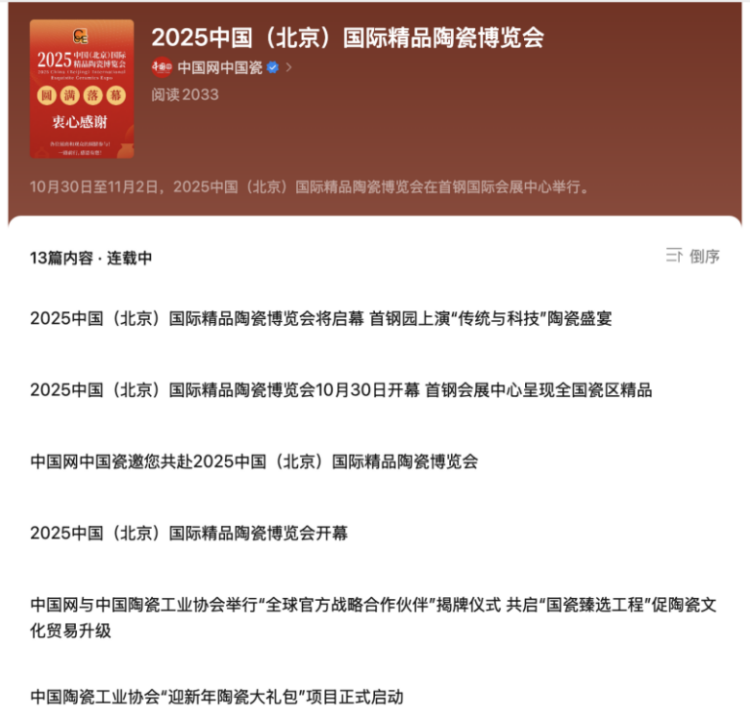 专题通过整合展前预热、展中直击、展后复盘的全周期内容,构建起覆盖陶瓷产业全链条的权威信息窗口。同时,依托中国网中国瓷“官方平台+社交媒体+流媒体账号”的传播矩阵,开设展会专栏,进行系列报道。