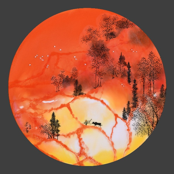 《炽林金辉》釉上彩瓷板画