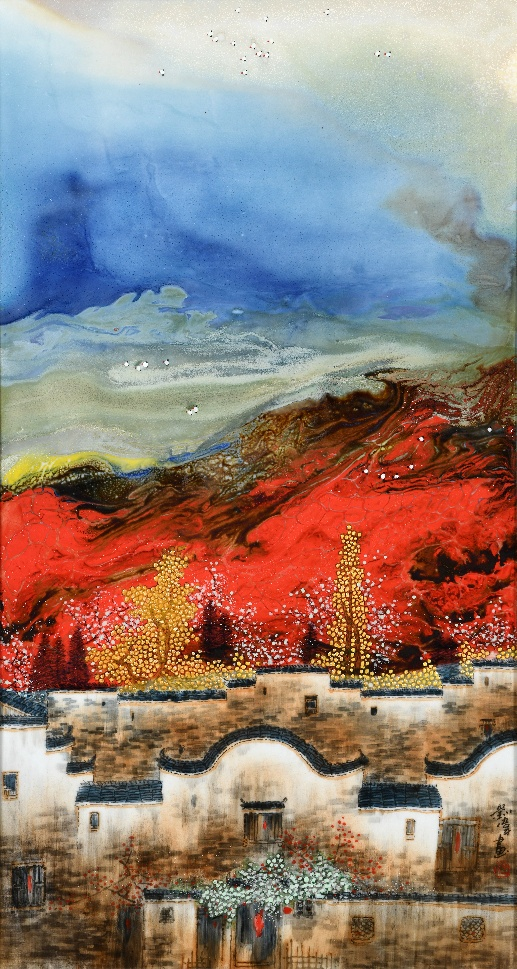 《徽韵秋山》颜色釉粉彩瓷板画