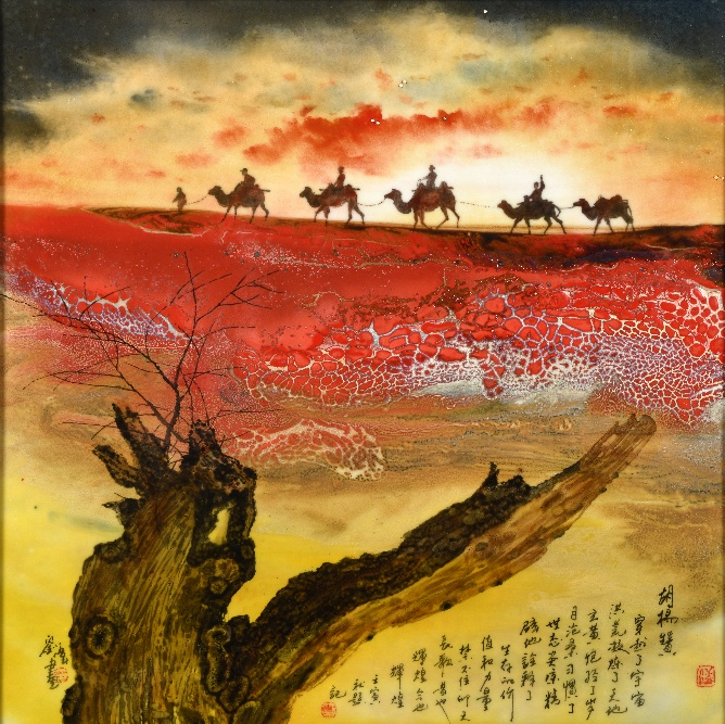 《胡杨赞》颜色釉粉彩瓷板画