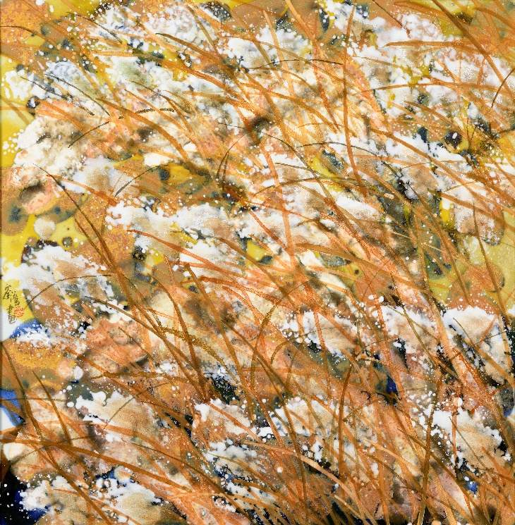 《金苇覆雪》颜色釉瓷板画