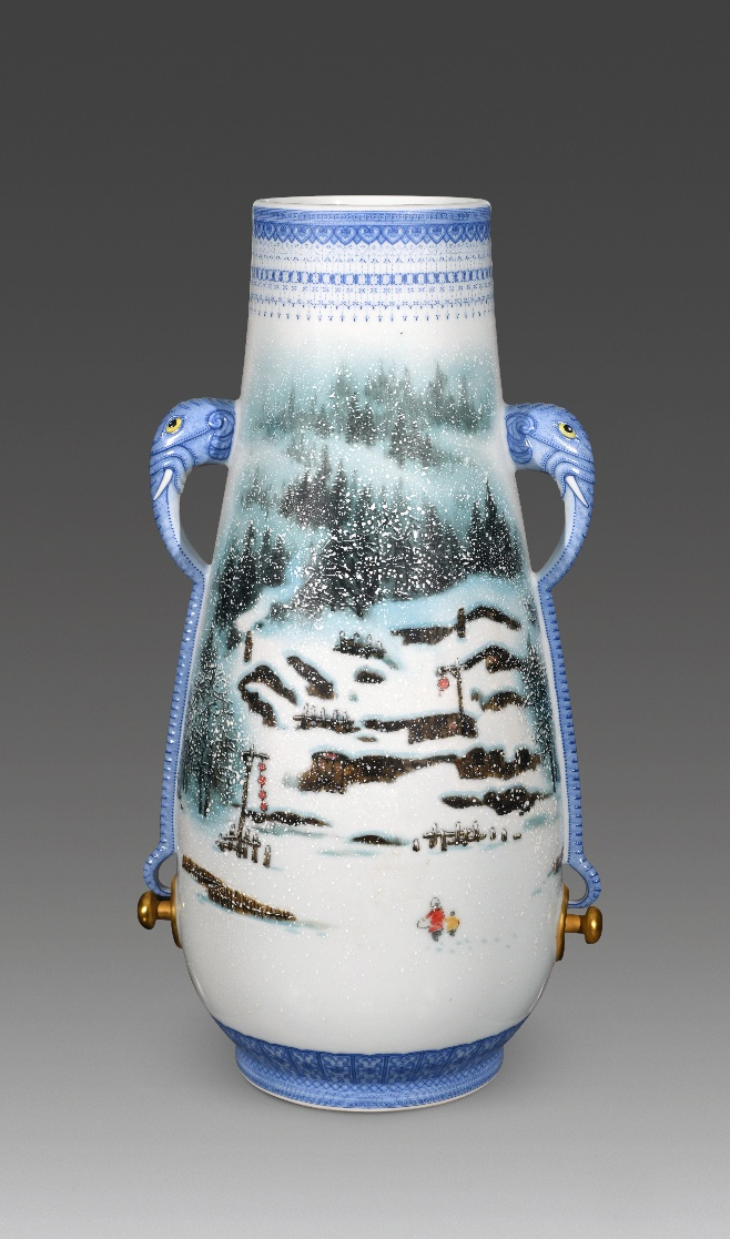 《瑞雪丰年》粉彩象耳尊