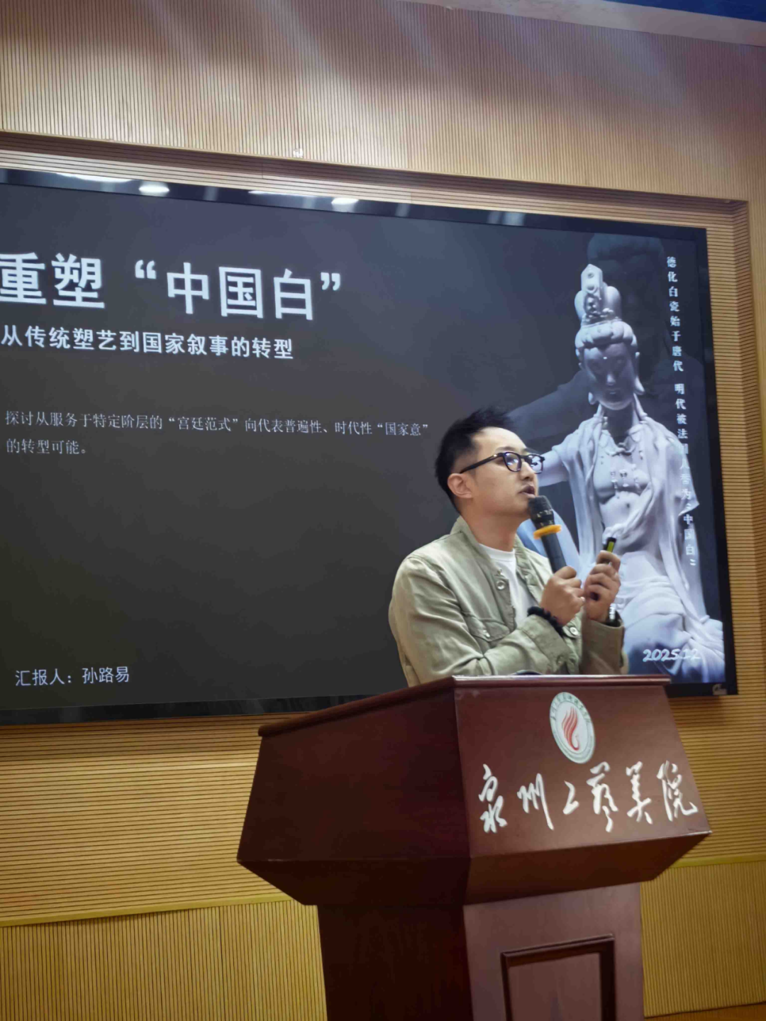 鲁迅美术学院孙路易老师,以《重塑“中国白”——从传统塑艺到国家叙事的转型》为题,探讨了德化瓷的当代价值提升路径。