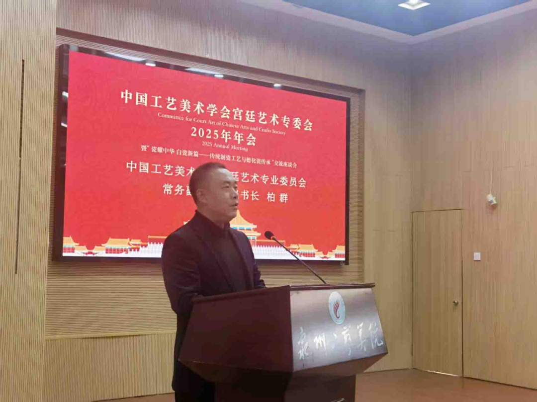 柏群代表专委会,向活动主办方、承办方及支持单位的热忱付出与细致保障表示诚挚感谢,向远道而来的各位嘉宾致以热烈欢迎,更向长期关心支持专委会发展的各界挚友表达由衷谢意。他讲到,专委会过去一年的蓬勃发展,离不开中国工艺美术学会的悉心指导,离不开每一位同仁的携手并肩。他希望,在未来两天的活动中,与会嘉宾能围绕“传承与创新、事业与产业、当下与未来”三大核心议题,聚焦德化瓷传承与发展进行深入研讨。愿大家在思想碰撞中凝聚共识,在经验分享中启迪智慧,助力以德化瓷为代表的宫廷艺术在新时代实现创造性转化、创新性发展。