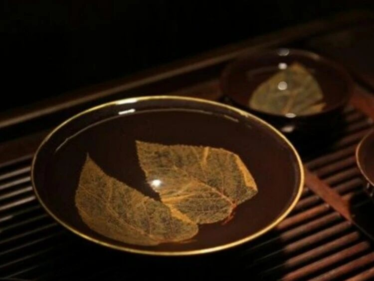 伍映山将复原木叶天目盏作为使命。他坚持使用本土材料,恢复传统烧制方法,摒弃商业材料和工业材料。经过无数次试验,他从树叶选材、釉料配比到烧成温度全程探索,最终成功以古法烧制出釉色温润、叶纹生动的木叶天目盏。他还创新性地选用菩提叶,融入佛教文化元素,让传统器物承载更丰富的文化表达。