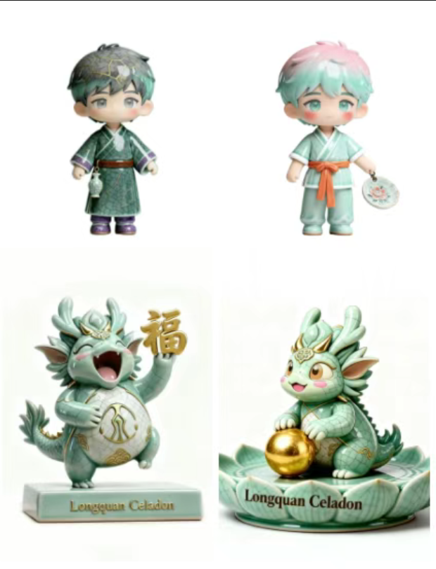 龙泉双青:哥釉弟青、青釉龙宝、哔啵、瓷灵小青IP形象