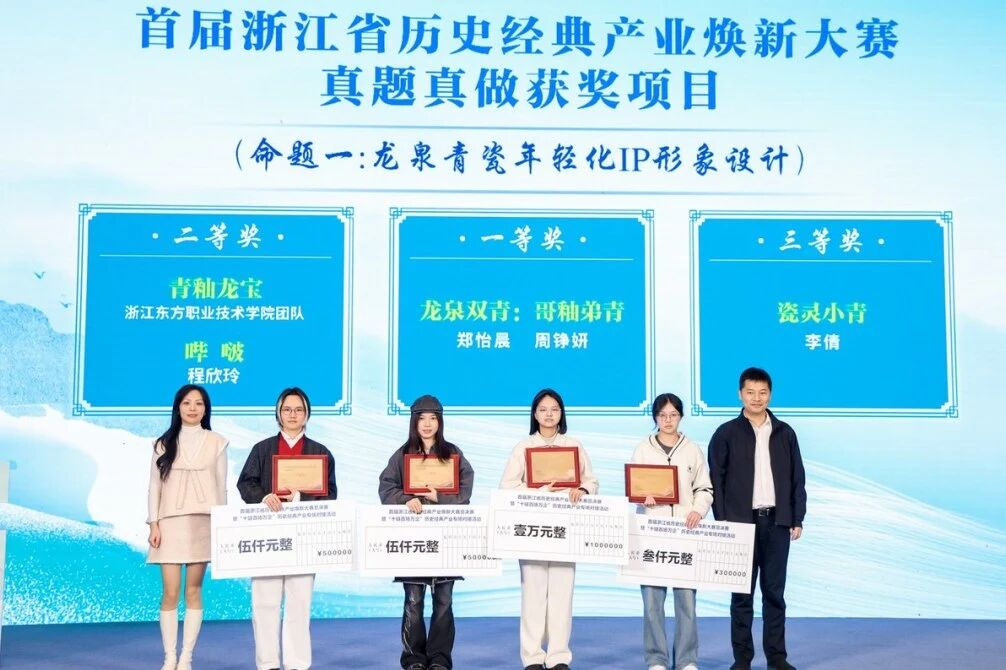 当1700多年的龙泉青瓷遇上“Z世代”的创意脑洞,会碰撞出怎样的火花?近日,首届浙江省历史经典产业焕新大赛总决赛暨“十链百场万企”专场对接活动在永康落幕。据悉,本次大赛聚焦青瓷、茶叶等特色历史经典产业,创新设置职业技能、产品创新、“真题真做”三大核心赛道。在“真题真做”赛道,由龙泉市出题、全省创作者参与的“龙泉青瓷年轻化IP形象设计”作品表现亮眼,共斩获一等奖1名、二等奖2名、三等奖1名,用创意为千年青瓷注入青春活力。