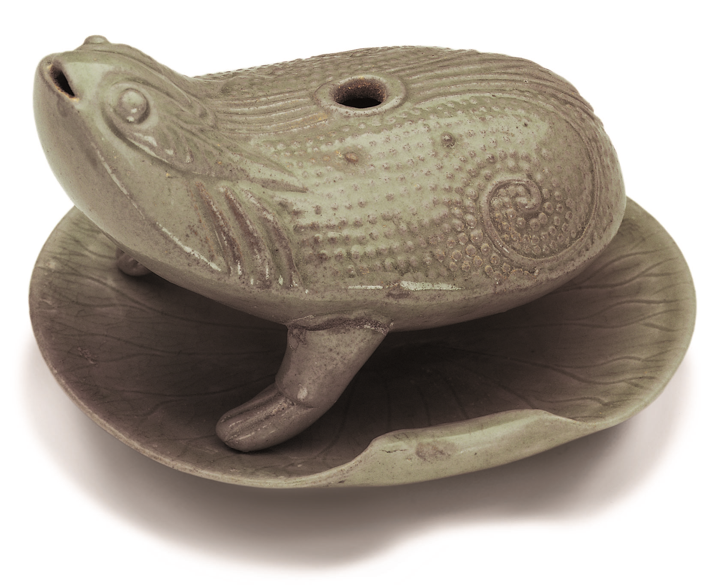 上林湖越窑遗址出土,青瓷三足蟾蜍。宁波市文化遗产管理研究院供图