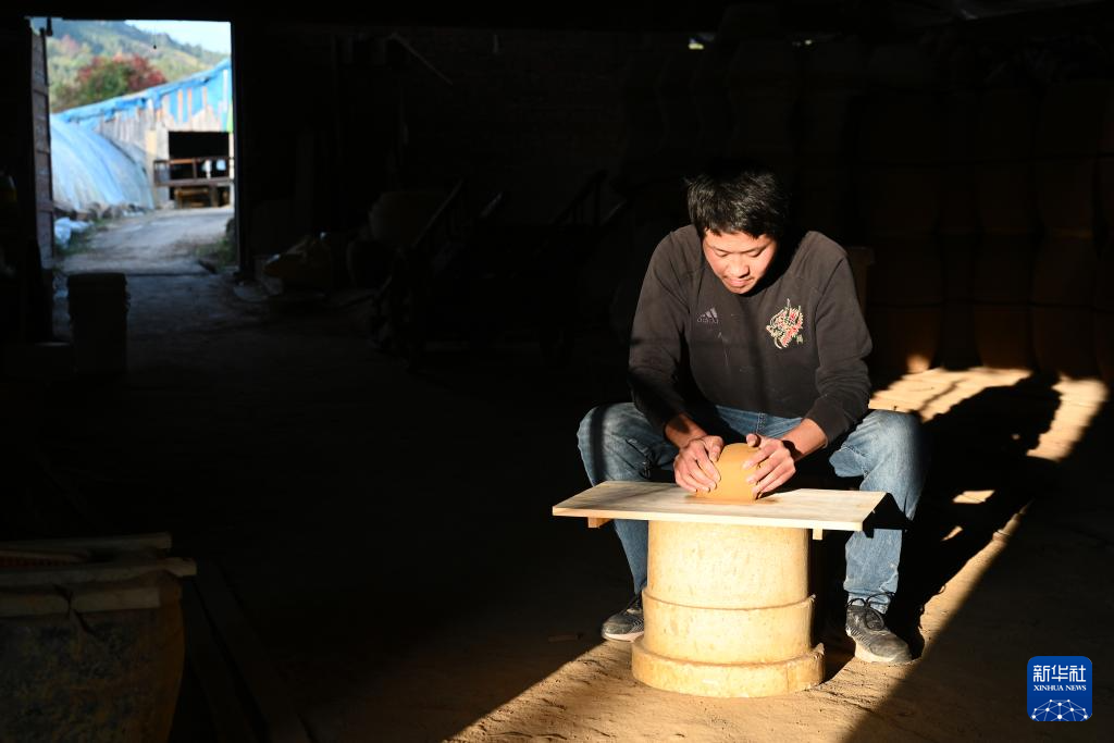 12月16日,吴泽缄在揉泥。新华社记者 周义 摄