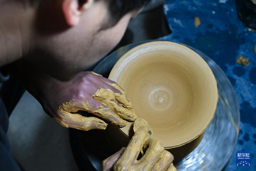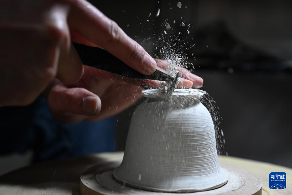 12月16日,吴泽缄在工作室拉坯。新华社记者 周义 摄