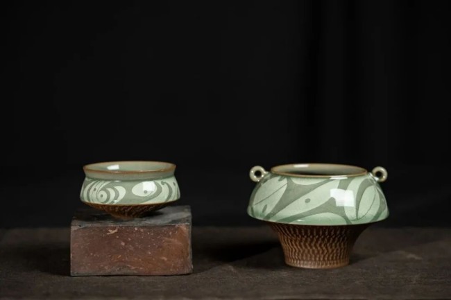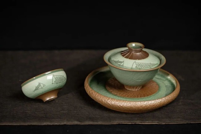 “传承不是墨守成规,而是让传统在当代活起来。”叶晨曦始终坚信,青瓷文化的生命力在于与时代同频共振。他打破传统青瓷纹饰的局限,将新石器时代半坡先民的古陶鱼纹复刻于梅子青茶具之上,朴拙流畅的线条搭配温润釉色,一经推出便深受年轻人喜爱。为了精准复刻鱼纹,他屏息凝神练习3个月,终于在曲面器物上同时呈现出线条的流畅感与粗犷感。