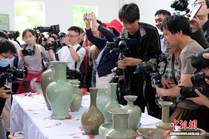 2024年6月,浙江慈溪柴烧越窑青瓷成功出窑,引民众拍摄。林波 摄