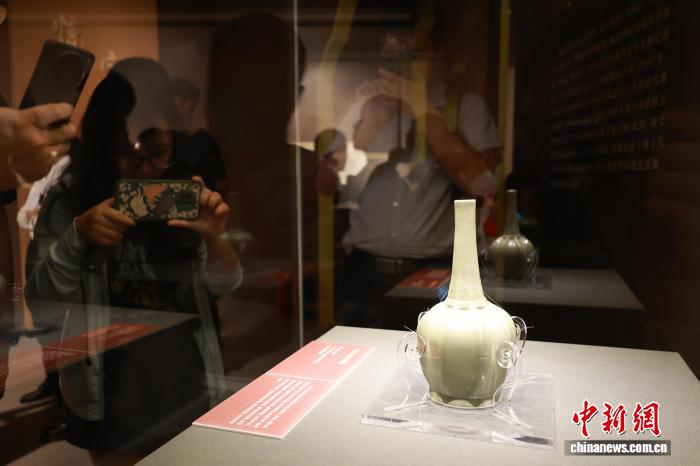 2025年6月,陕西法门寺出土的“八棱净水秘色瓷瓶”在杭州展出。林波 摄