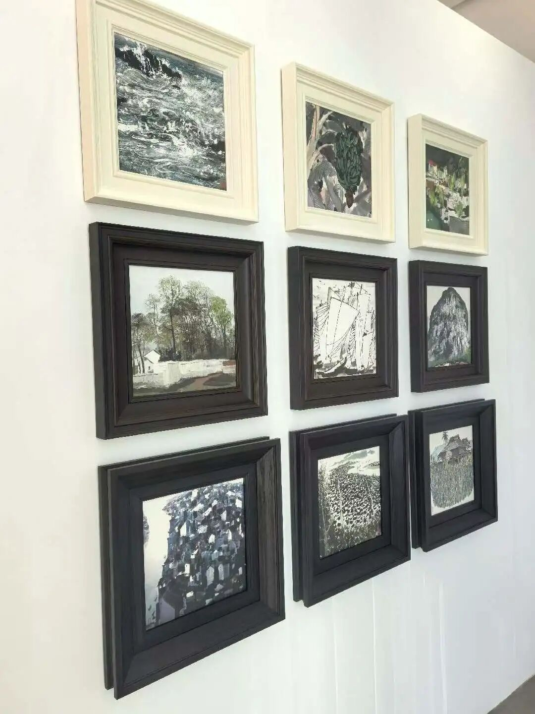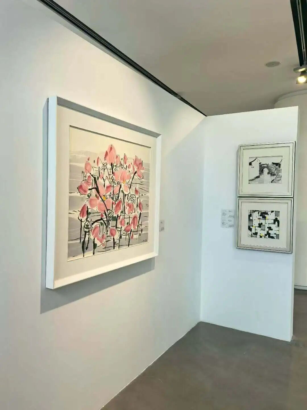 展览在 200㎡的核心展区内构建起“江南意象 /生命之歌 /形式之美”三大主题分区,采用“作品 +叙事”双轨展陈模式。主展区设置数字投影装置,循环播放吴冠中创作花絮与陶瓷版画制作工艺纪录片;配套区实现功能分区全覆盖,体验式文创区、画册领取区与休息洽谈区有机衔接,为观众提供观展、消费、交流的一站式服务。