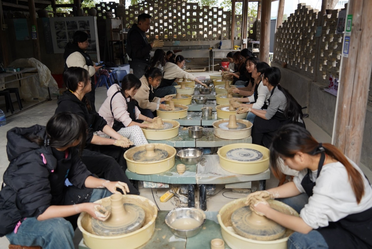 沐火节系列活动火热开展之际,温州理工学院30名学子化身“瓯窑古镇文旅体验官”,深度沉浸式探访古镇肌理、触摸瓯窑温度,用镜头定格文化之美,以青春视角为陶山文旅注入新鲜动能。“一抔陶土藏古韵,一窑烈火炼新生。亲手触摸瓯窑瓷坯的细腻质感,才真正读懂‘千峰翠色’的匠心传承。”在陶山古镇汉臣陶艺工作室,温理工学子认真体验瓯窑拉坯、修坯的传统技艺。一旁的“体验官”不时驻足记录细节,镜头里既有师傅指尖流转的匠心,也有学子眼中的好奇与赞叹。拍摄间隙,同学们还拿起话筒即兴配音,用年轻化的语言解读瓯窑历史、分享体验感悟,让千年瓷文化变得鲜活可感。