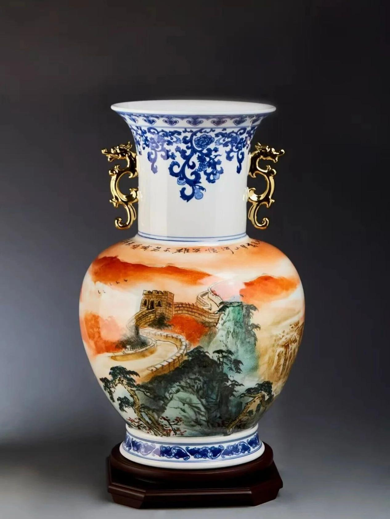 其代表作品众多,如粉彩瓷板画《苍山飞瀑》获中国陶瓷艺术大展金奖并被联合国教科文组织红钻战略基金收藏;《晴岚浮翠》获第三届“大地奖”金奖;《观棋图》获中国工艺美术“百花奖”金奖;《空林》《秋艳》被中南海紫光阁收藏等。此外,今年与中国工艺美术大师曾瑾、国家一级美术师马厚禧为纪念中国人民抗日战争暨世界反法西斯战争胜利 80周年共创的《和平盛世》双龙瓷尊,广受社会各界关注。