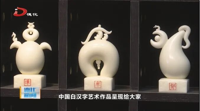 在工作室展厅中,彭成雄向我们展示了这件刚出炉的作品:通体洁白如玉,巧妙融入汉字笔画与标点符号元素,造型错落有致、圆润饱满,既富设计感,又透着近似象形文字的趣味性。