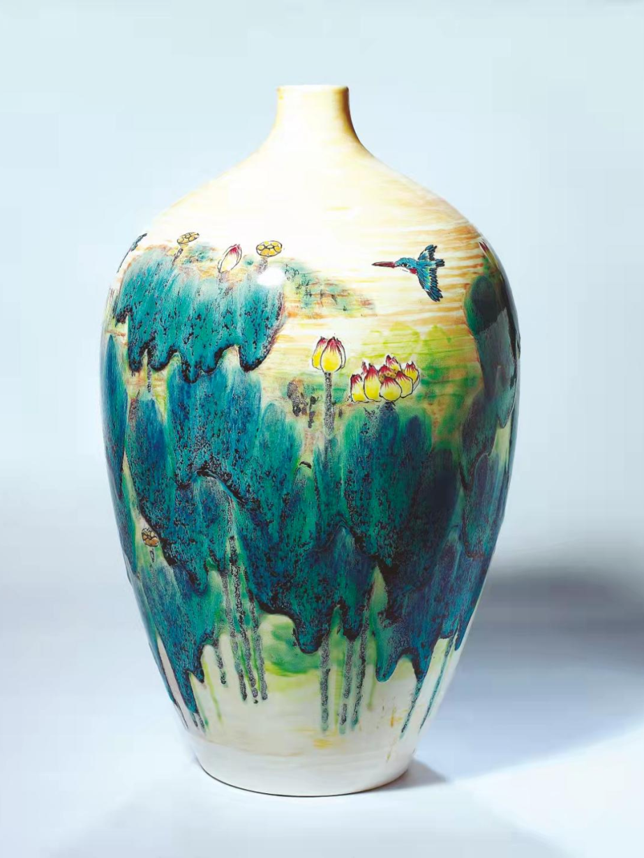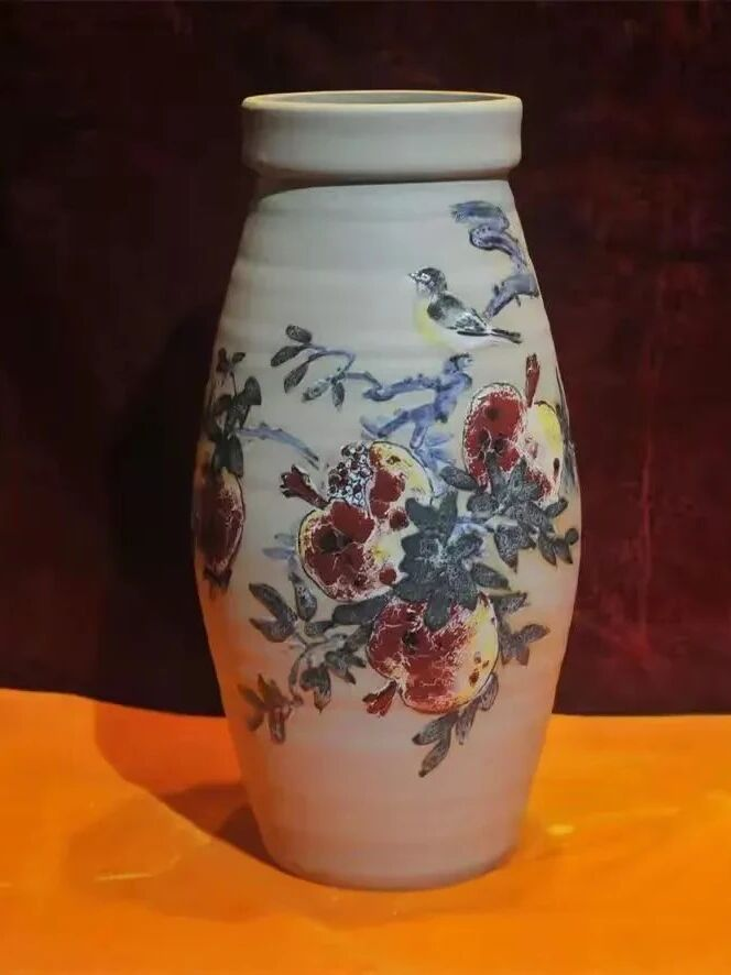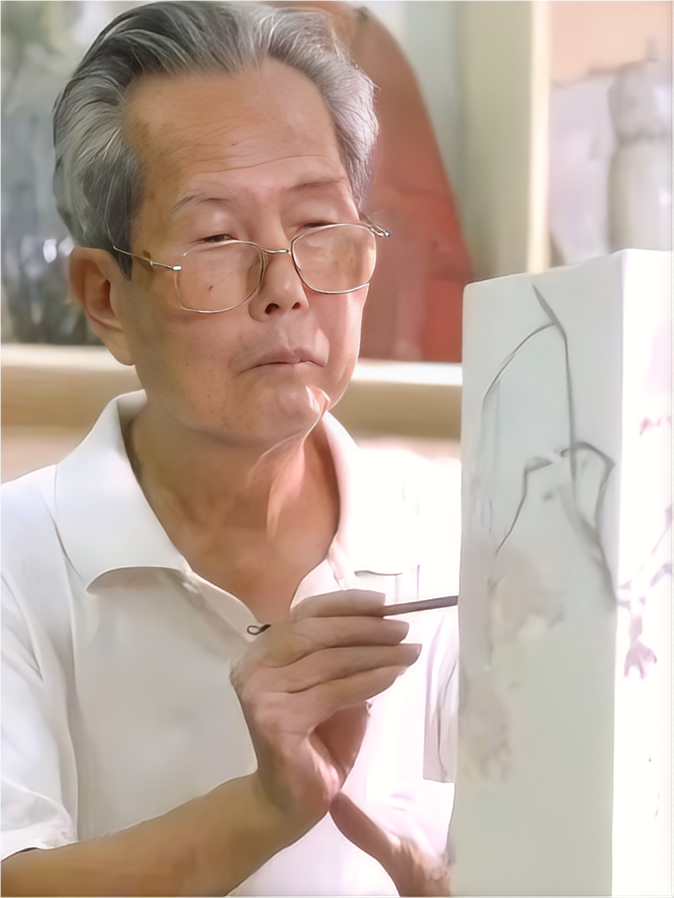 他出生于陶瓷重镇潮州枫溪,15岁起拜师学艺,后进入广州美术学院深造,系统学习花鸟画,并师从吴维松、黎雄才等艺术大家,打下了坚实的美术基础。这使得他在陶瓷创作中能“触类旁通”,不仅精于彩绘,还擅长从国画构图、敦煌壁画中汲取灵感。