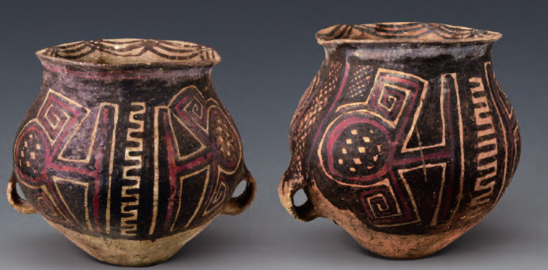 彩陶绘画的主要方式是在打磨光滑的橙红色陶坯上,以天然的矿物质颜料进行描绘,用赭石和氧化锰作呈色元素,然后入窑烧制。在橙红色的胎体上呈现出赭红、黑、白、诸种颜色的美丽图案,形成纹样与器物造型高度统一,达到装饰美化陶器的效果。