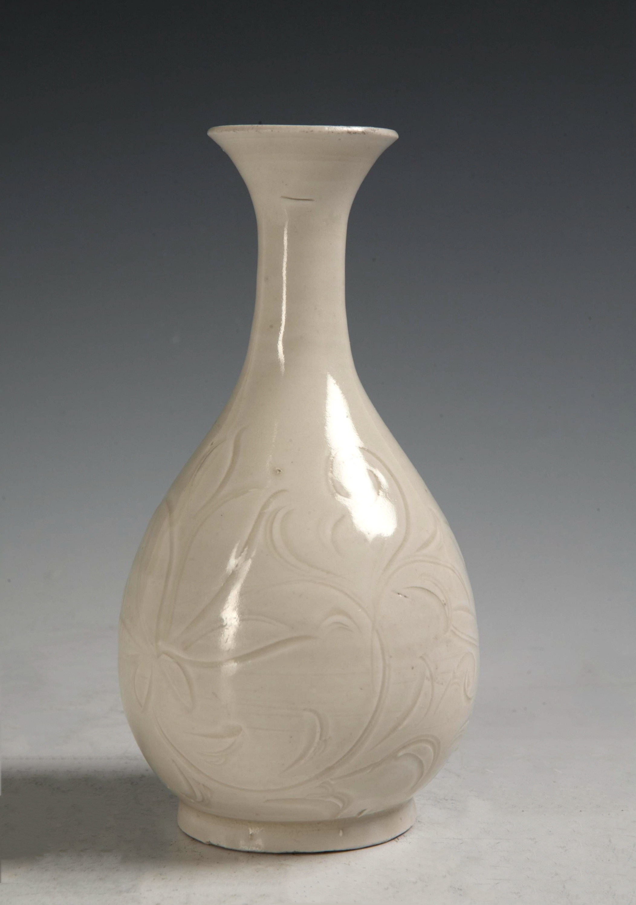 △宋定窑白釉刻萱草纹玉壶春瓶天津博物馆藏
