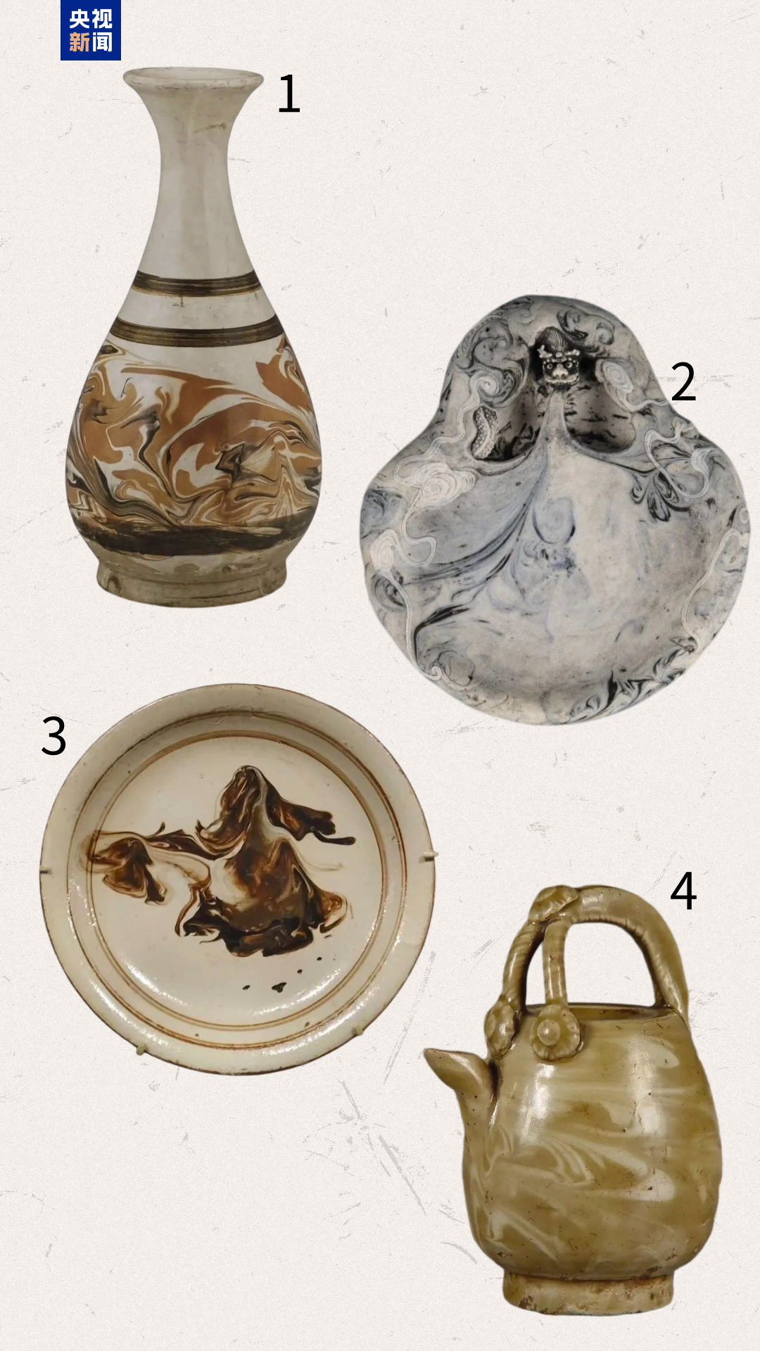 △1:宋绞釉玉壶春瓶长治市博物馆藏 2:清绞釉云龙纹瓷砚常熟博物馆藏 3:清白地绞釉盘铜川博物馆藏 4:辽绞釉三叉带子提壶大同市博物馆藏