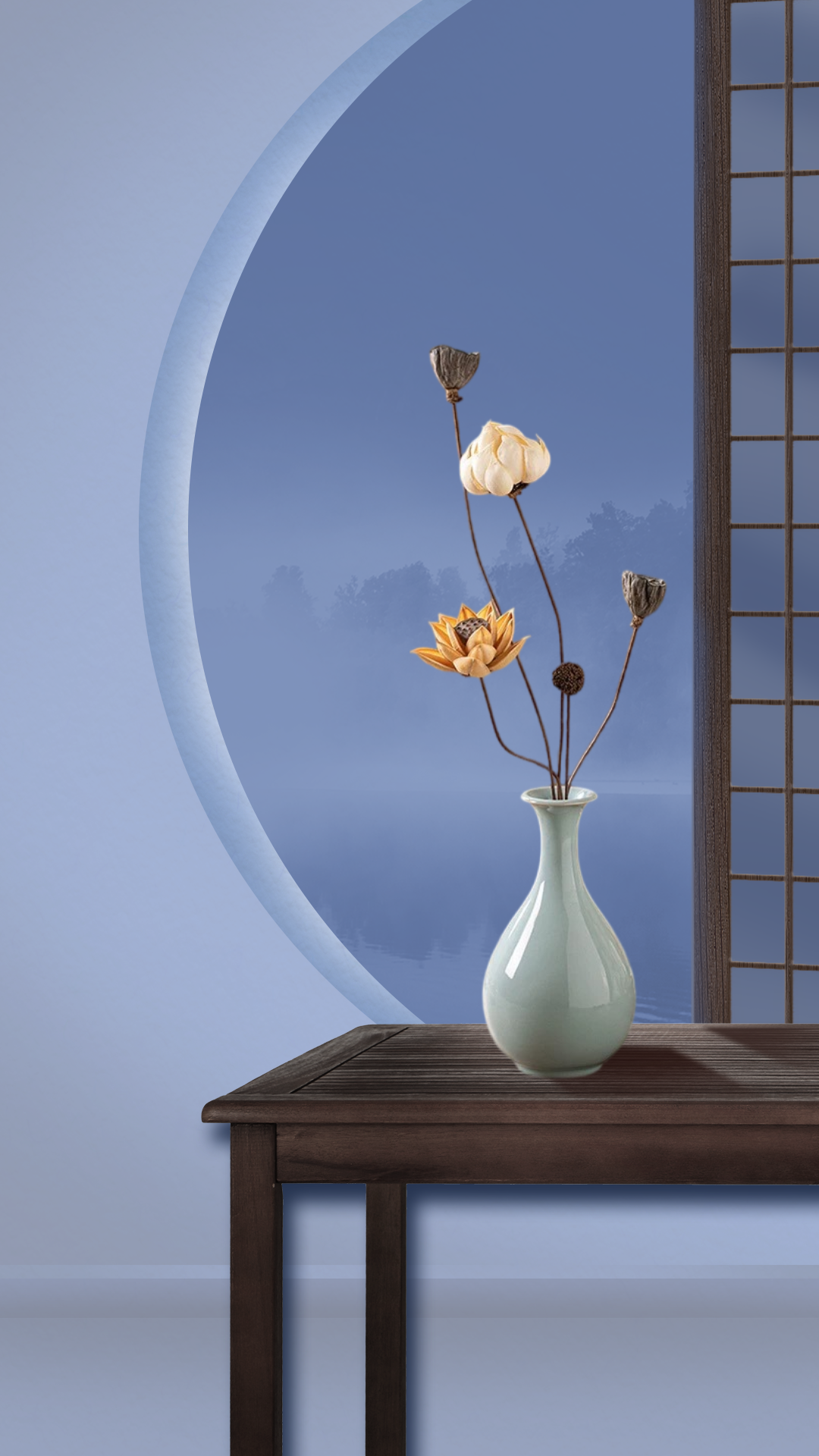 摇曳生姿的萱草花与象牙白釉瓶身融为一体