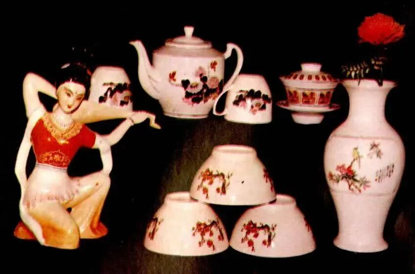 众多作品中,“反弹琵琶”雕塑尤为突出。这件作品体态灵动、衣纹流畅、彩绘绚丽,曾荣获甘肃省工艺美术百花奖。同期创作的神话人物、十二生肖储蓄罐等瓷塑,色彩鲜活、神态生动,展现出安口窑在造型、彩绘与题材上的全面探索与突破。
