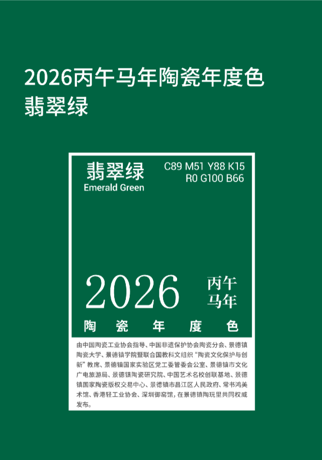 近日,2026丙午马年陶瓷年度色“翡翠绿”在景德镇陶玩里正式发布。